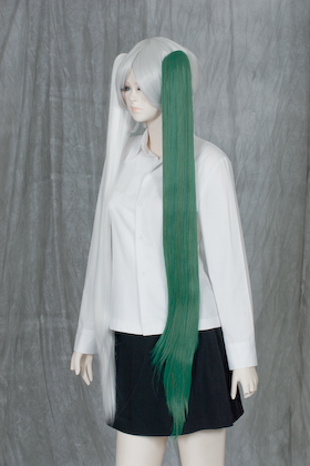It is a clip type point wig. You can reproduce ponytails and twin tails. It is a mixture of dark green with lime green.