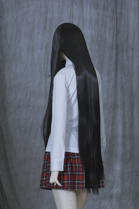 It is about 110 cm long style. Bangs are also long and ideal for processing. It is standard black.