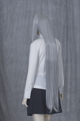 It is about 110 cm long style. Bangs are also long and ideal for processing. Standard silver color mixture.