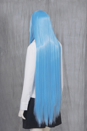 It is about 110 cm long style. Bangs are also long and ideal for processing. It is bright and bright aqua blue.