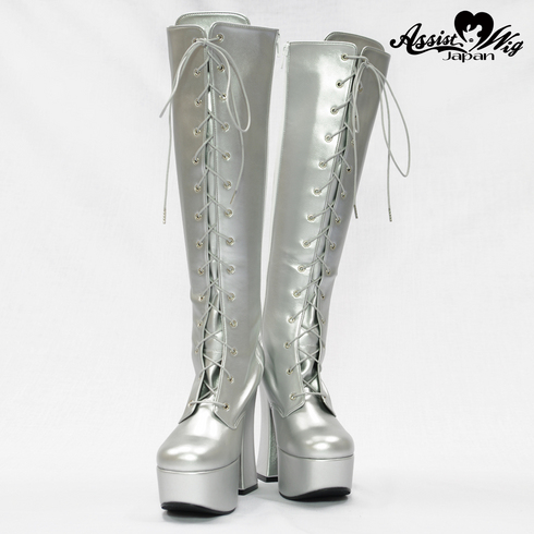 Thick bottom stretch lace up boots ver 2 thick heel 14 cm Silver