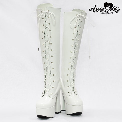 Thick bottom stretch lace up boots ver 2 thick heel 14 cm White