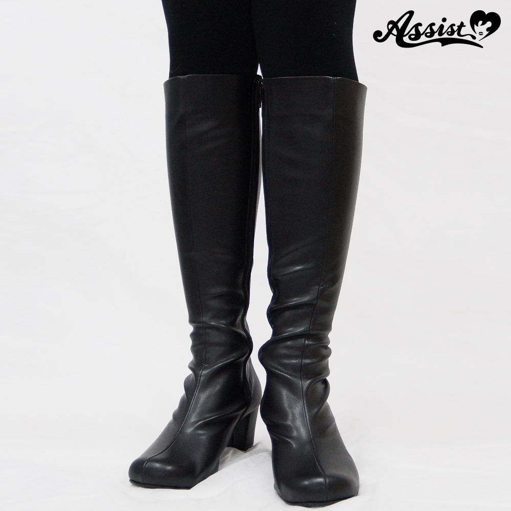 Queen size stretch long boots low heel 5.5 cm Black