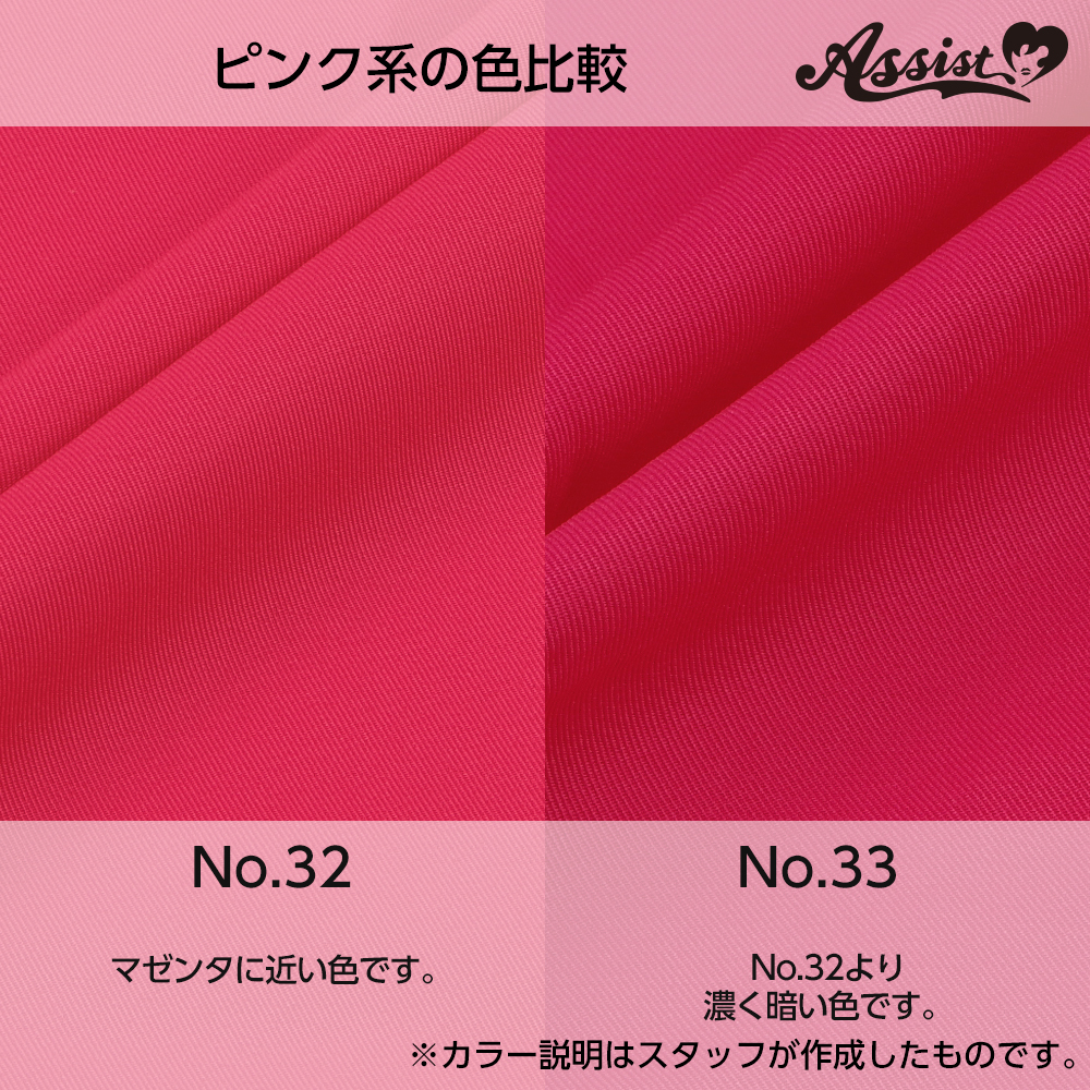 ●Standard fabric that can be used for a wide range of costume production ●Standard, firm fabric that is wrinkle-resistant ●Fabric with more shine than polyester twill ●Slightly thinner than polyester twill, easy to sew with a home sewing machine ●80 colors available