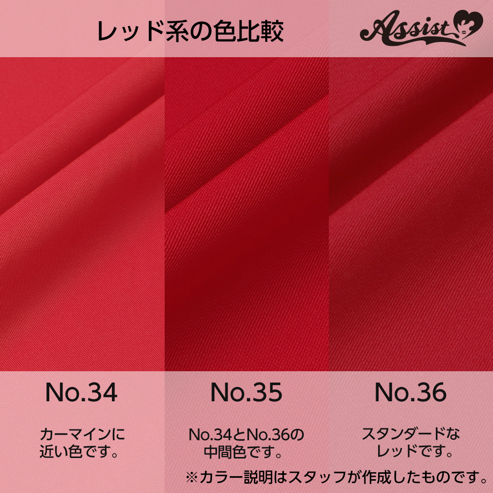●Standard fabric that can be used for a wide range of costume production ●Standard, firm fabric that is wrinkle-resistant ●Fabric with more shine than polyester twill ●Slightly thinner than polyester twill, easy to sew with a home sewing machine ●80 colors available