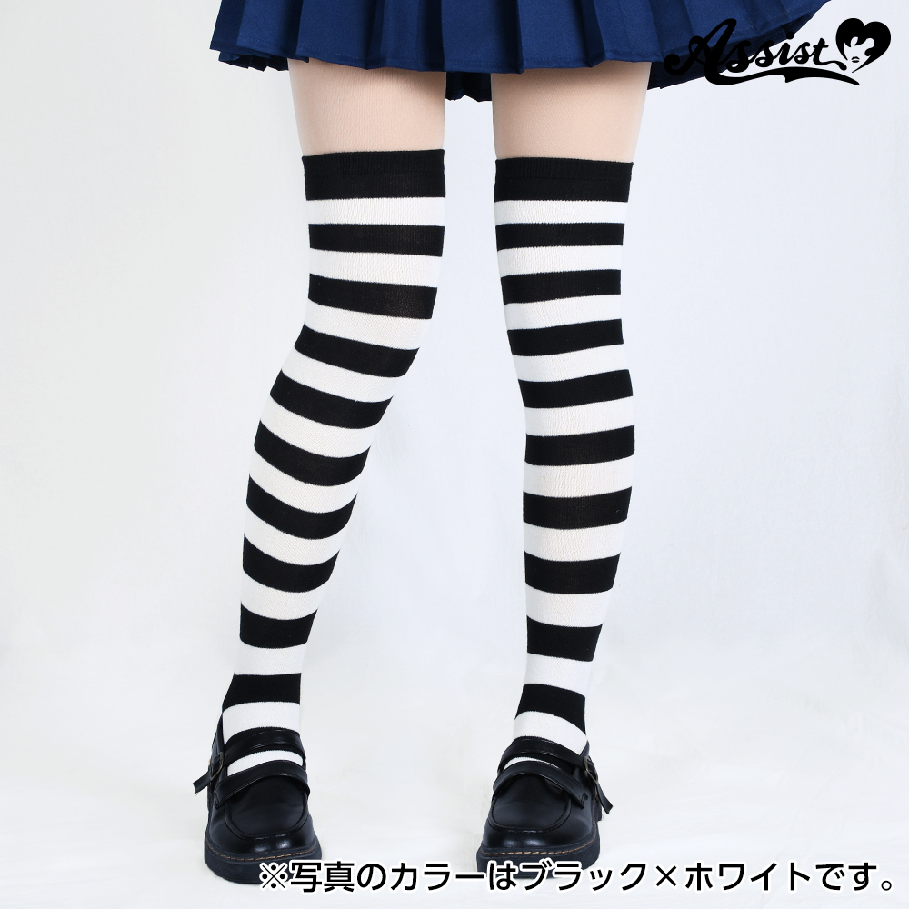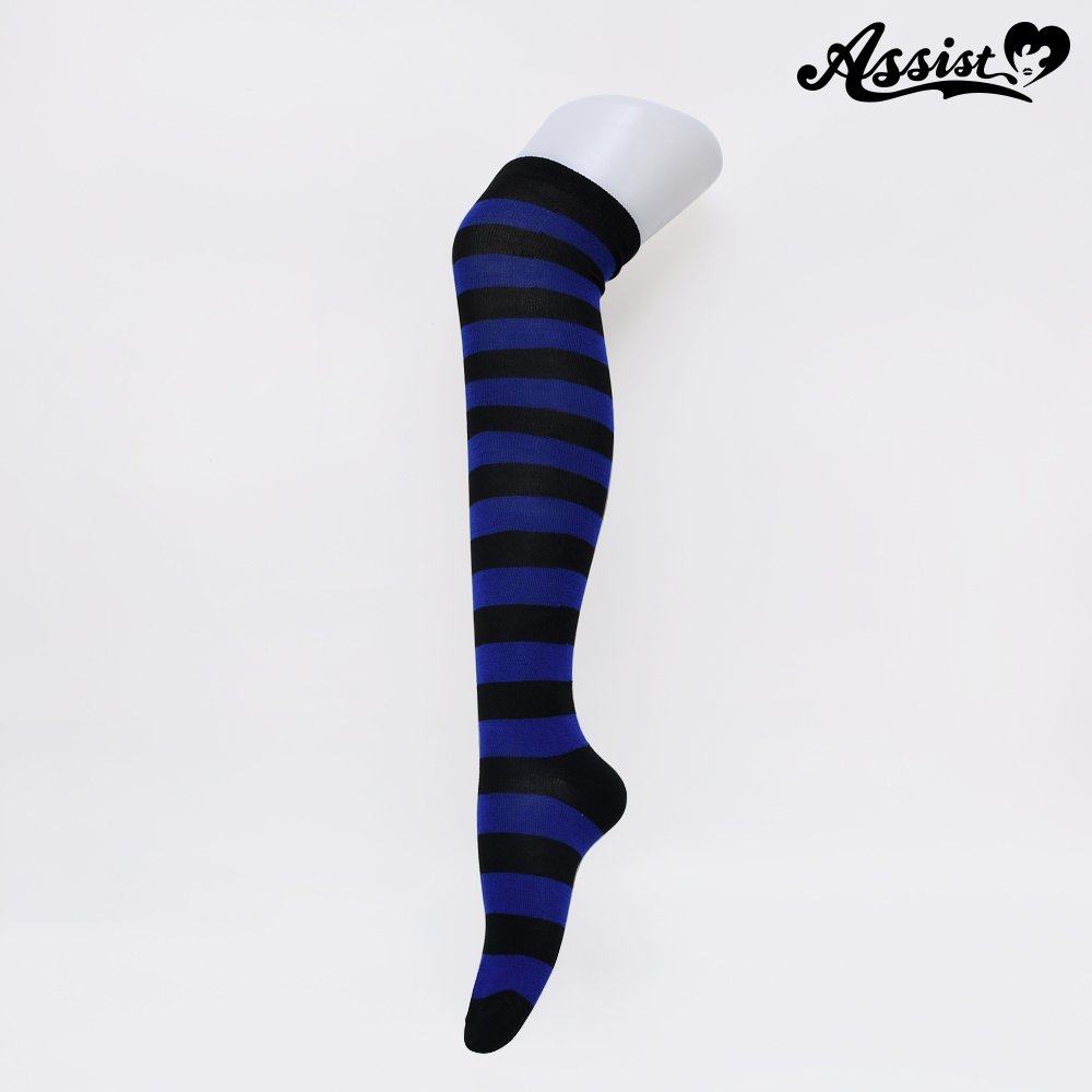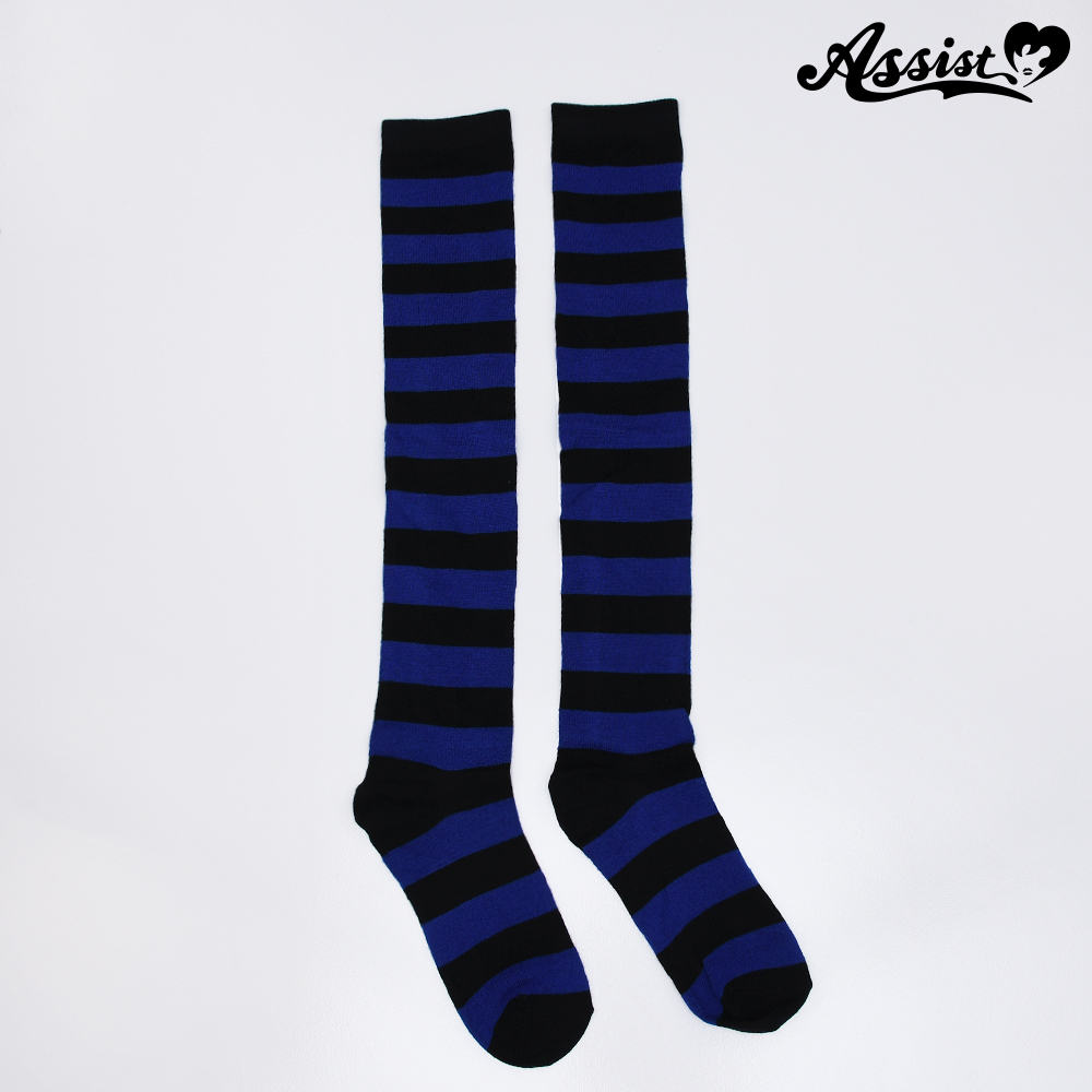 Over knee socks border Black × Blue
