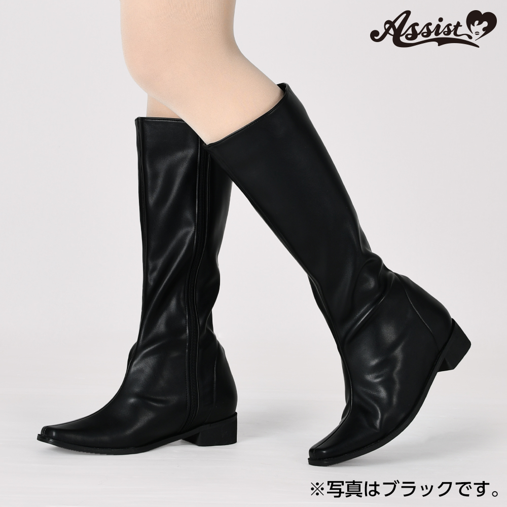 These in-heel long boots have a clean silhouette.