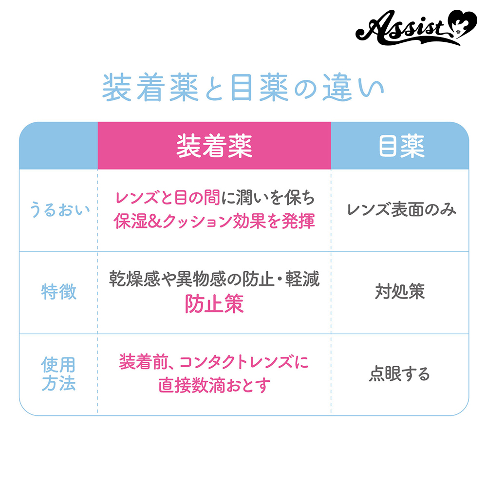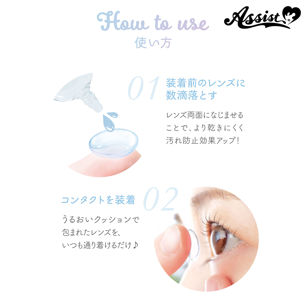 ② Blocks lens dirt Moisturizing ingredients reduce foreign body sensation, irritation, and dryness when wearing lenses, making it easier to wear lenses.