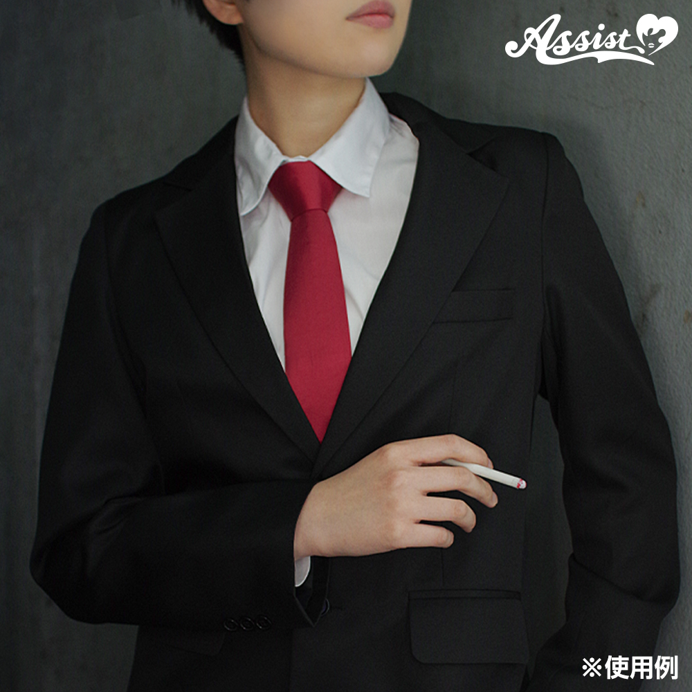 This is a colored tie that focuses on the texture of the fabric and the slender silhouette.